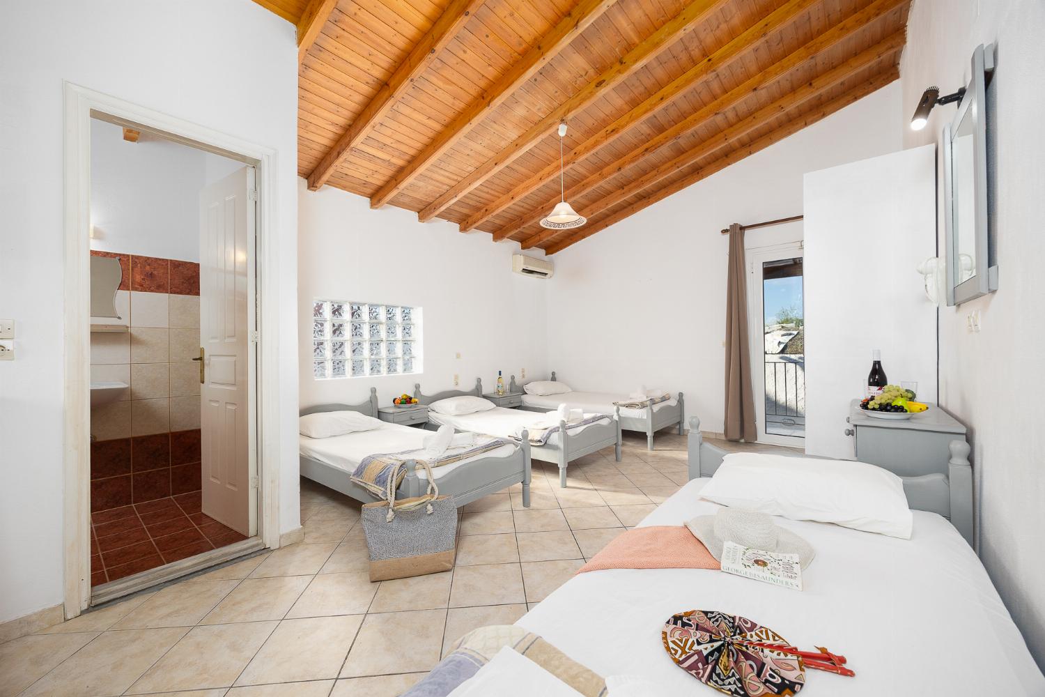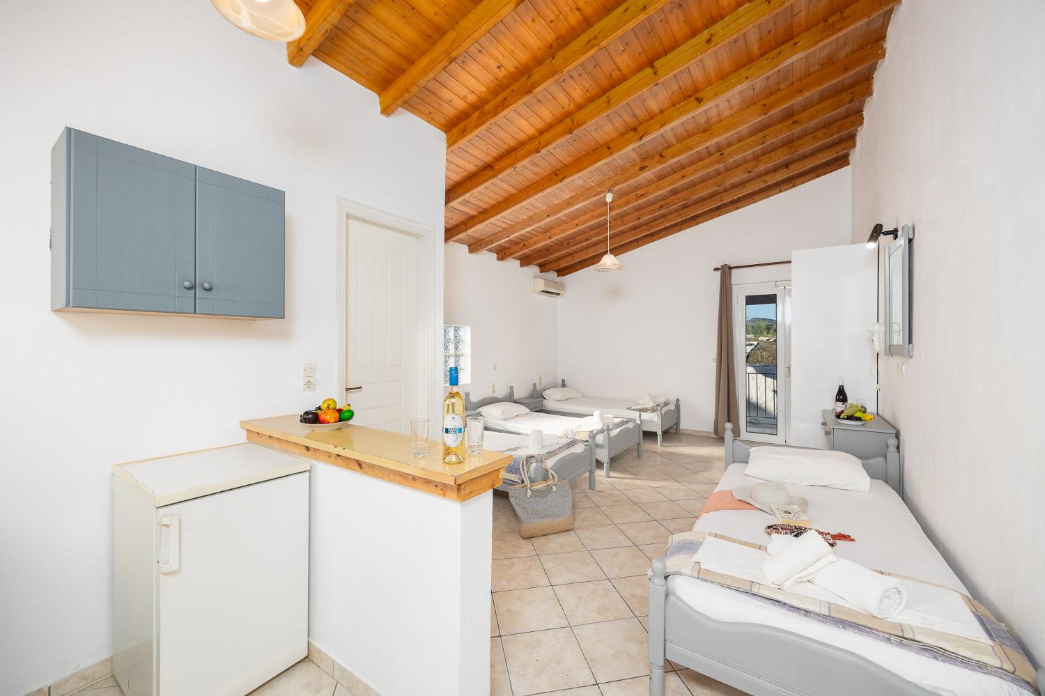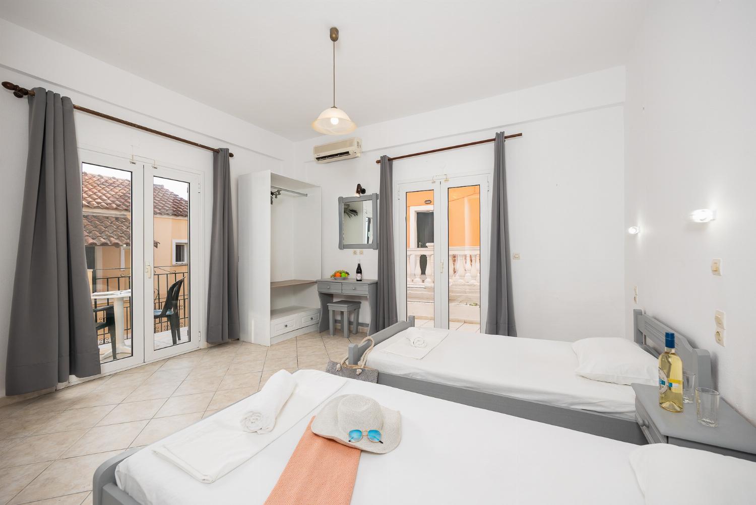 Spacious studio with a private balcony overlooking the surroundings. Equipped with two comfortable single beds, air conditioning, and modern amenities. Ideal for relaxing stays with plenty of natural light and fresh air.