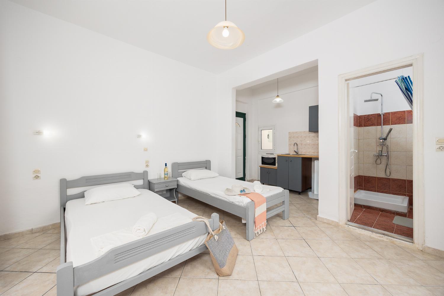 Bright and airy studio featuring a private balcony with sea views. Includes two comfortable single beds, air conditioning, and a cozy sitting area. Perfect for relaxing stays with plenty of natural light and fresh sea breeze.